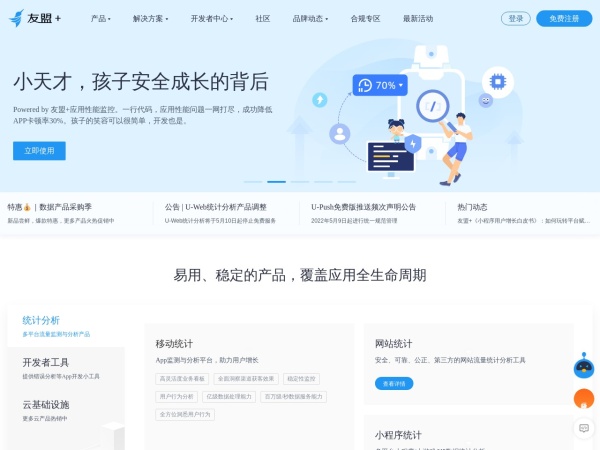 友盟+(全称:友盟+,国内领先的开发者服务及数据智能服务商)于2022年05月09日收录在本站网络服务分类目录,并成功建立了索引服务,供搜索引擎抓取/蜘蛛爬行/用户查找/检索服务;截至目前为止,本站已有 683个网友浏览了友盟+网站。