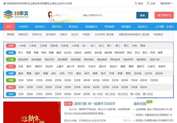 99作文(全称:99作文_小学作文、初中作文、高中作文、手抄报、读后感、600字作文大全)于2022年05月14日收录在本站论文范文分类目录,并成功建立了索引服务,供搜索引擎抓取/蜘蛛爬行/用户查找/检索服务;截至目前为止,本站已有 1418个网友浏览了99作文网站。
