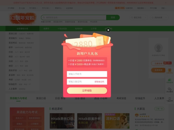 沪江网校(全称:沪江网校-英日法韩13国外语、考研留学、职场兴趣在线学)于2022年05月16日收录在本站在线教育分类目录,并成功建立了索引服务,供搜索引擎抓取/蜘蛛爬行/用户查找/检索服务;截至目前为止,本站已有 1027个网友浏览了沪江网校网站。