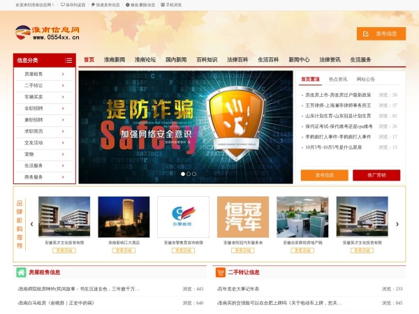淮南信息网(全称:淮南信息网-[享受网络新生活,点击淮南信息网][淮南百姓网,淮南人才网,淮南房产,淮南论坛])于2022年05月24日收录在本站地方门户分类目录,并成功建立了索引服务,供搜索引擎抓取/蜘蛛爬行/用户查找/检索服务;截至目前为止,本站已有 1789个网友浏览了淮南信息网网站。