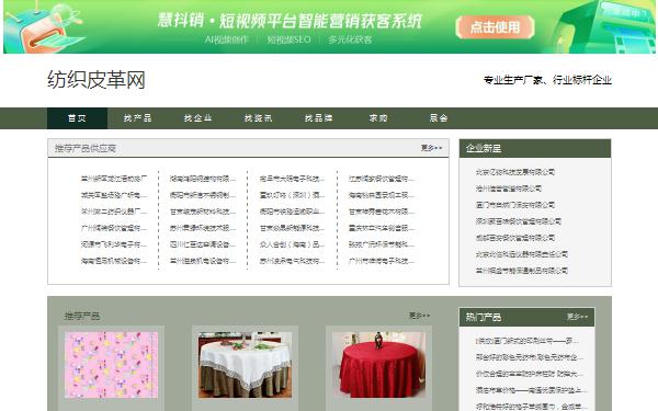 纺织皮革网(全称:纺织皮革_皮革_牛皮革_纺织品-纺织皮革网)于2023年02月21日收录在本站纺织皮革分类目录,并成功建立了索引服务,供搜索引擎抓取/蜘蛛爬行/用户查找/检索服务;截至目前为止,本站已有 952个网友浏览了纺织皮革网网站。