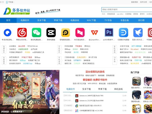 多多软件站 - 绿色软件下载(全称:多多软件站-提供绿色软件和热门单机游戏下载)于2024年12月11日收录在本站软件下载分类目录,并成功建立了索引服务,供搜索引擎抓取/蜘蛛爬行/用户查找/检索服务;截至目前为止,本站已有 783个网友浏览了多多软件站 - 绿色软件下载网站。