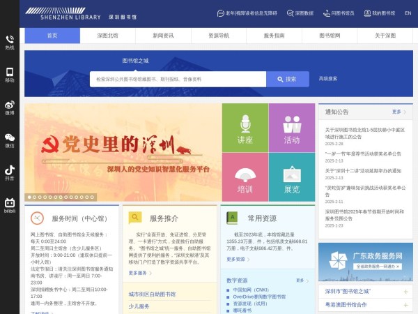 深圳图书馆(全称:深圳图书馆官网)于2025年03月05日收录在本站书籍网站分类目录,并成功建立了索引服务,供搜索引擎抓取/蜘蛛爬行/用户查找/检索服务;截至目前为止,本站已有 294个网友浏览了深圳图书馆网站。