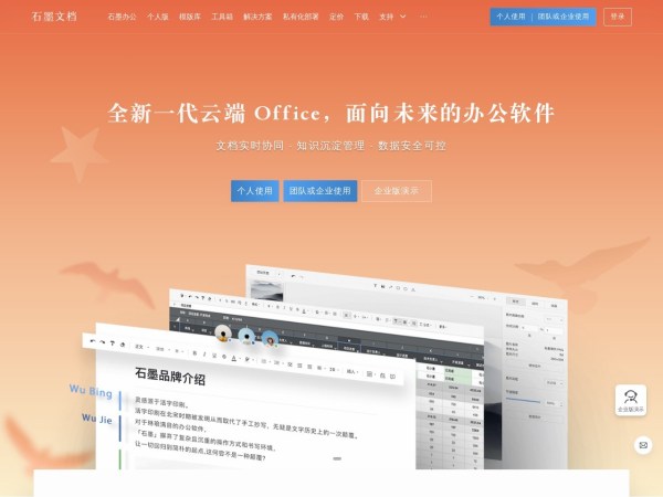 石墨文档官网(全称:石墨文档官网-在线协同办公系统平台,支持云端多人在线协作文档,表格)于2025年03月19日收录在本站办公文档分类目录,并成功建立了索引服务,供搜索引擎抓取/蜘蛛爬行/用户查找/检索服务;截至目前为止,本站已有 227个网友浏览了石墨文档官网网站。