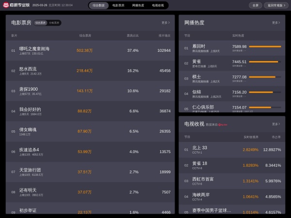 猫眼专业版(全称:猫眼专业版-实时票房)于2025年03月27日收录在本站网络服务分类目录,并成功建立了索引服务,供搜索引擎抓取/蜘蛛爬行/用户查找/检索服务;截至目前为止,本站已有 221个网友浏览了猫眼专业版网站。
