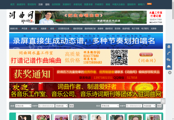 词曲网(全称:词曲网 - 曲谱原创作品,原创歌词,原创歌曲,声乐谱,器乐谱,歌谱,简谱,乐谱,五线谱,吉他谱,钢琴谱,戏曲谱,合唱谱,歌单)于2025年06月08日收录在本站音乐网站分类目录,并成功建立了索引服务,供搜索引擎抓取/蜘蛛爬行/用户查找/检索服务;截至目前为止,本站已有 112个网友浏览了词曲网网站。