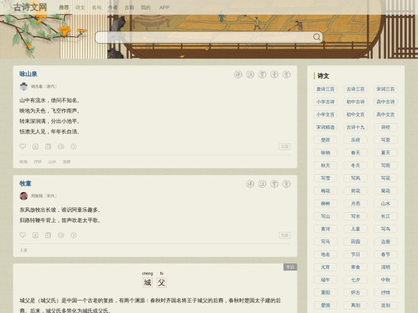本站收录库提供的古诗文网都来源于网络,不保证外部链接的准确性和完整性,同时,对于该外部链接的指向,不由收录库实际控制,在2025年06月17日收录时,该网页上的内容,都属于合规合法,后期网页的内容如出现违规,可以直接联系网站管理员进行删除(点我反馈)。