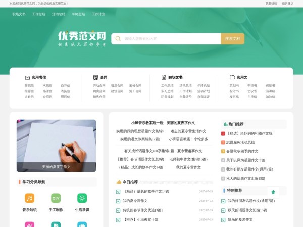 优秀范文网(全称:优秀范文网-优秀范文写作网站)于2025年07月08日收录在本站办公文档分类目录,并成功建立了索引服务,供搜索引擎抓取/蜘蛛爬行/用户查找/检索服务;截至目前为止,本站已有 50个网友浏览了优秀范文网网站。