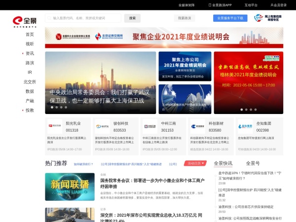 全景网(全称:全景网_资本市场路演互动平台_专业财经资讯网站)于2022年05月06日收录在本站金融财经分类目录,并成功建立了索引服务,供搜索引擎抓取/蜘蛛爬行/用户查找/检索服务;截至目前为止,本站已有 1116个网友浏览了全景网网站。