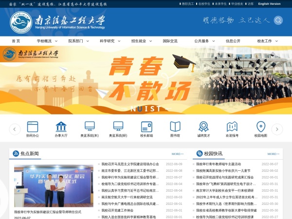 南京信息工程大学(Nanjing University of Information Science & Technology)享有“中国气象人才摇篮”之美誉,由江苏省人民政府、中华人民共和国教育部、中国气象局、国家海洋局共建,国家“双一流”世界一流学科建设高校,入选“2011计划”、“特色重点学科项目”、“卓越工程师教育培养计划”,具有完整的学士、硕士、博士教育培养体系,为世界气象组织成员,是一所以大气科学为特色,海洋、信息、环境、管理等多学科协调发展的全国重点大学。