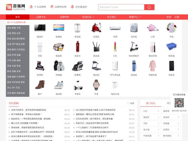 百强网是一家以品牌为核心的购物网站,每月更新十大品牌排行榜(大数据技术排名),实时聚合全网品牌特价信息,帮您花更少的钱,买更好的品牌货!还有百强论坛交流社区,选购分享两不误,让您秒变购物达人。